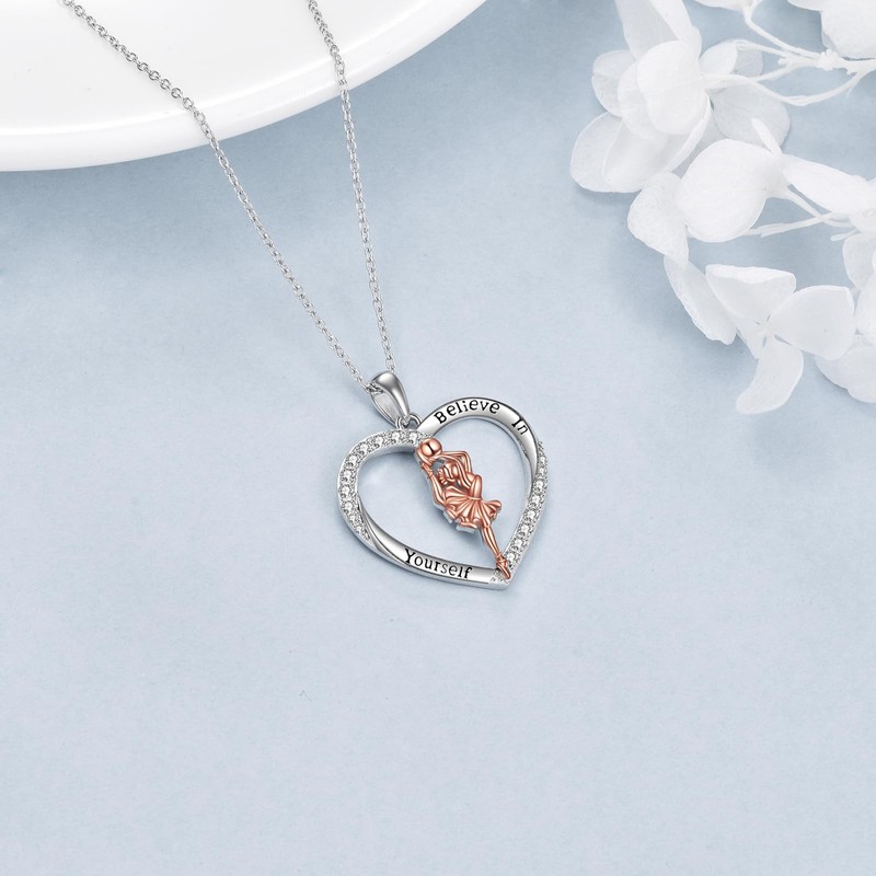 YAFEINI Gymnastics Gift for Girls Ballerina Gifts Necklace 925 Sterling Silver Gymnastics Necklace Jewellery Ballerina Gymnastics for Women Gifts, Sterling Silver, Cubic Zirconia