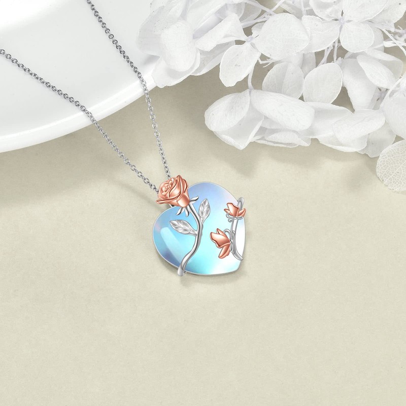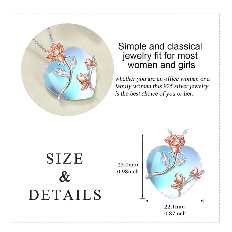 - ♥Heart symbolizes forever love – love is never ending. two butterflies represent unwavering love,Rose Flower symbolizes romantic love. Rose Necklace with Immaculate Moonstone make the necklace look so shining. Wearing it you will be the focus in any occasions