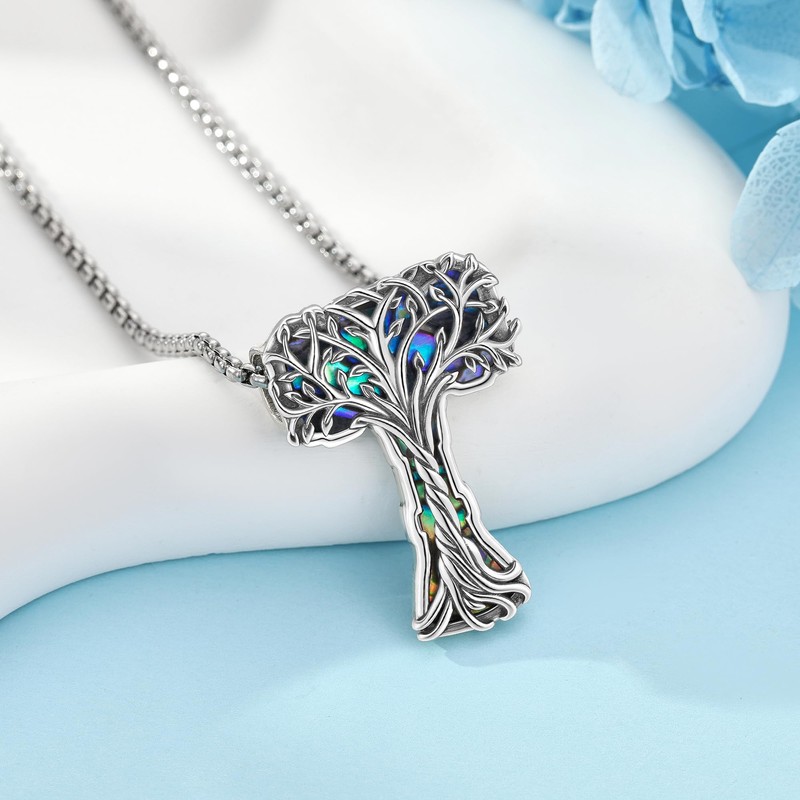 YAFEINI Thors Hammer Necklace Sterling Silver Abalone Shell Tree of Life Pendant Viking Mjolnir Jewellery for Women Men