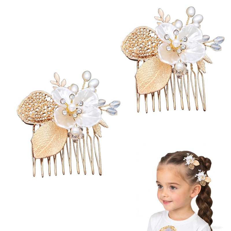 YAFIYGI 2Pcs Flower Girl Headband for Wedding Gold Hair Pins Small Crystals Headpiece for Flower Girl Kids Dance Formal Events Little Hair Pack for Special Occasions