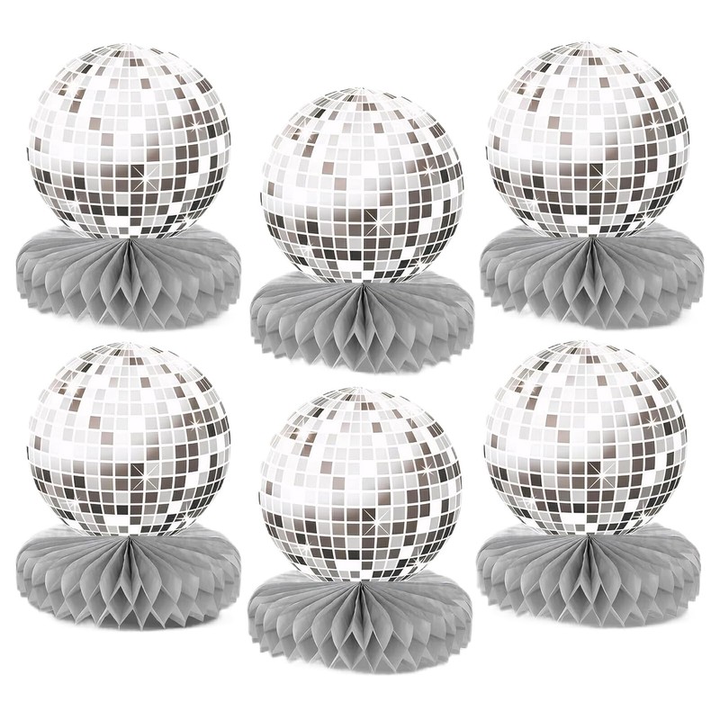 Yafuidil - 6 piezas de centro de mesa con diseño de discoteca, diseño de panal de abeja, 3D con purpurina para hombres y mujeres, decoración de mesa de fiesta para fiestas de regreso a los años 70