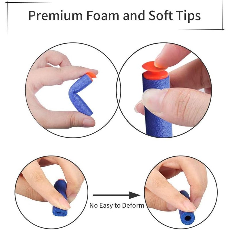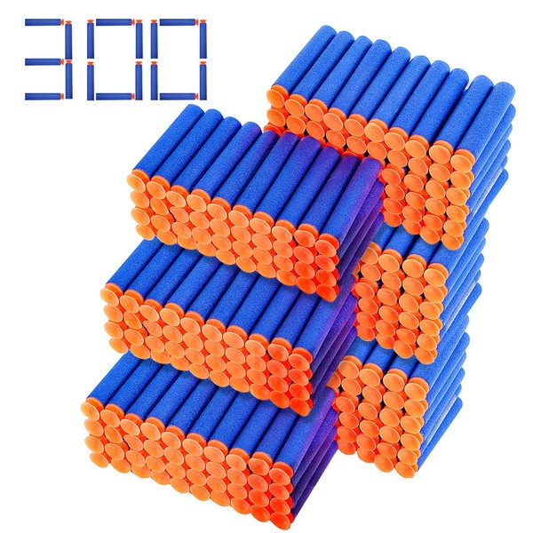 - EVA materials & 100% Safe: 300-dart refill pack. How to make your child's gun fight safe and will not be injured? The density of our compatible with nerf elite darts is lower, so it is a little soft, and suitable for children to use