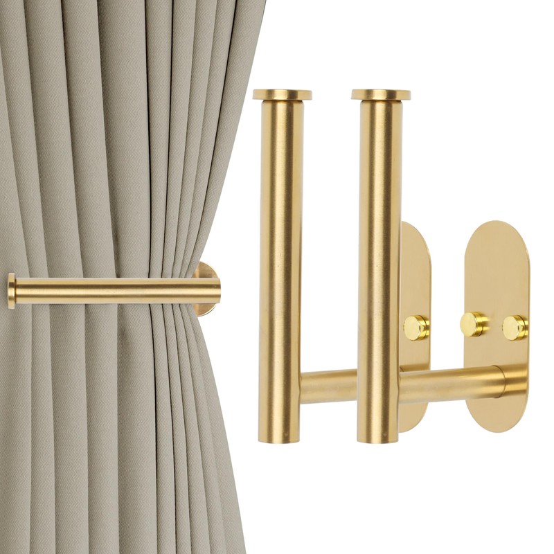 Yagoo 2 Pcs Adhesive Curtain Holdbacks,Screw-in Curtain Tie Backs Curtain Holders Tiebacks Curtain Hooks for Wall Mounted Curtain Pull Backs for Home Decor Drapes(2, Gold)