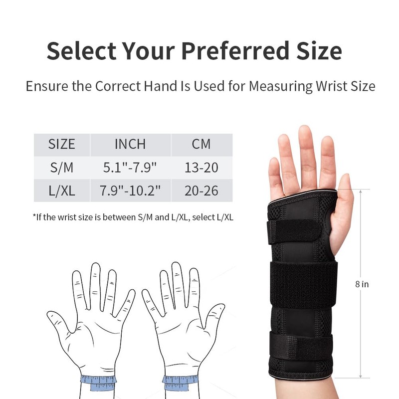 - Find Your Perfect Size: The wrist brace comes in S/M and L/XL sizes, suitable for both left and right hands. Prior to confirming your order, be sure to consult the size chart and measurement guide, verifying the chosen size for which hand.