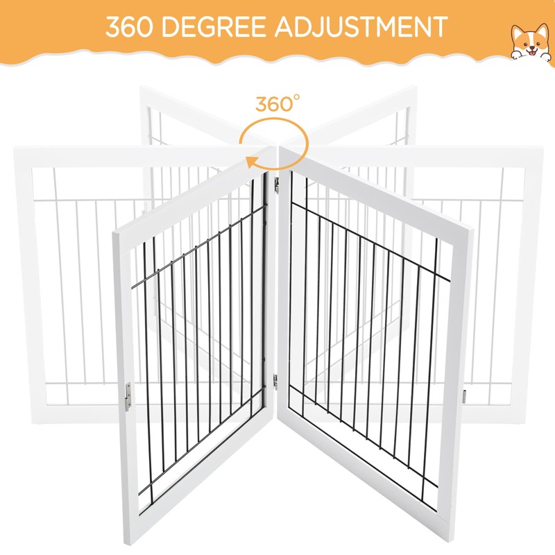 - 🐶【6 Panel Pet Gate】Constructed from a durable wooden frame and strong steel wire interior, this 6-panel dog gates for doorways extra wide is solid enough to confine your furry friends securely.