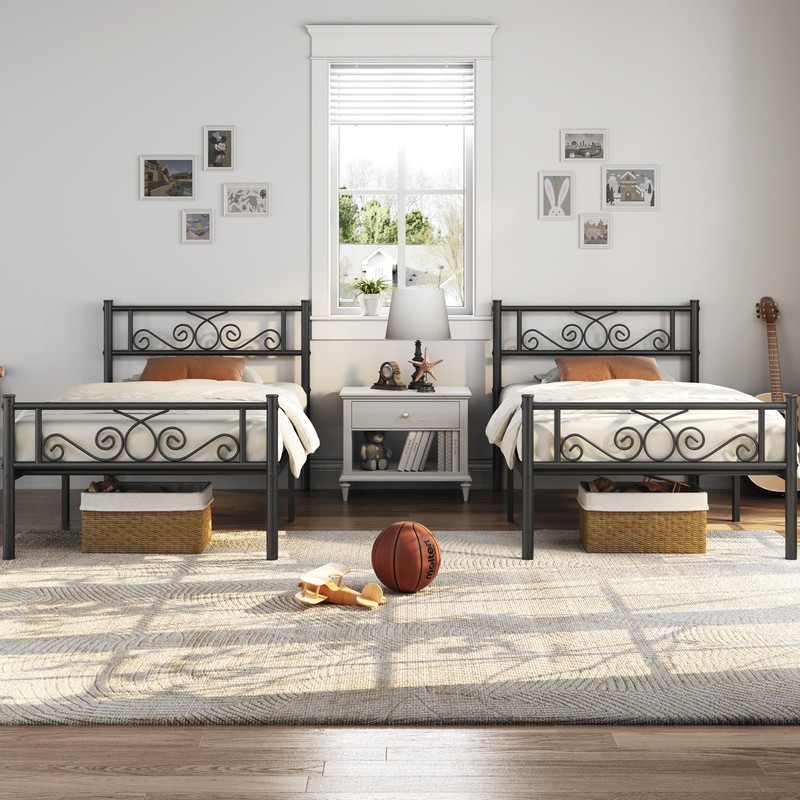 Yaheetech 2 Pcs Classic Metal Platform Bed Frame with Headboard and Footboard Flower Design Mattress Foundation Easy Set Up Structure Twin XL Size Black