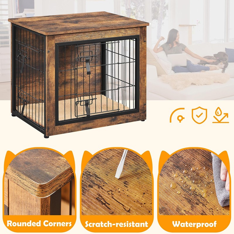 This multi-functional dog crate furniture aims to create a cozy shared living space for both dogs and their loving owners. Crafted with substantial materials such as powder-coated metal wires and CARB P2-compliant MDF with scratch-resistant lamination, this dog crate furniture boasts durability and exceptional strength, serving as a reliable kennel and a stylish side table all in one.