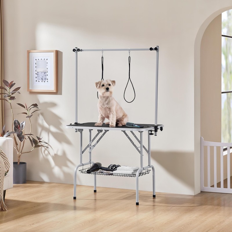 Yaheetech 36'' Pet Grooming Table for Dogs Adjustable Height Portable Trimming Table Drying Table w/Arm/Noose/Mesh Tray Maximum Capacity Up to 265Lb, Black
