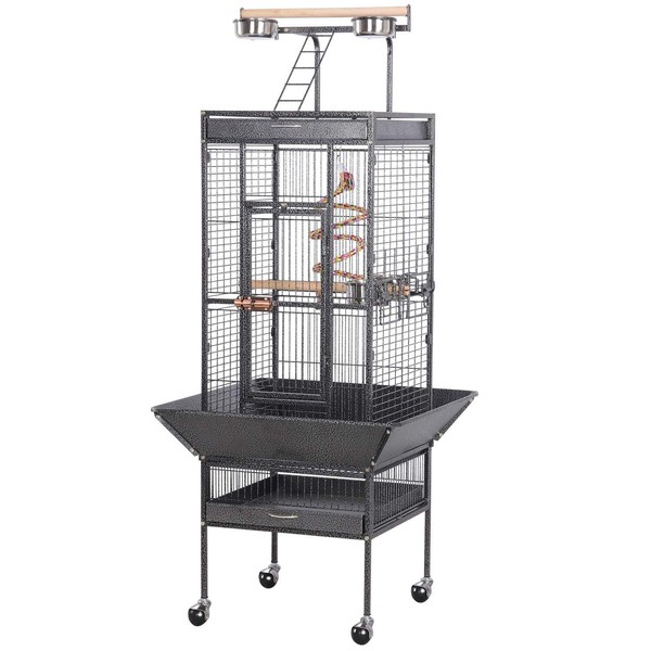 Yaheetech 61.5-inch Wrought Iron Rolling Large Parrot Bird Cage for Parakeets with Play Top