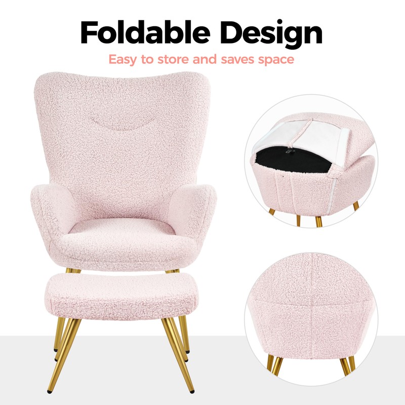 - Sturdy Construction & Folding Backrest: This armchair and ottoman set is built of long-wearing polyester boucle fabric, solid metal legs, and high-density foam filling. When not in use, the high back can be folded down to protect the chair from dust and facilitate storage