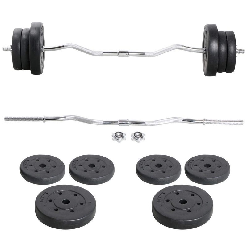 - Barbell with Weights: This barbell weight set comes with four 2.5kg/5.5lb plates, two 5kg/11lb plates, one 10cm/4in curl bar and one pair of star lock collars.