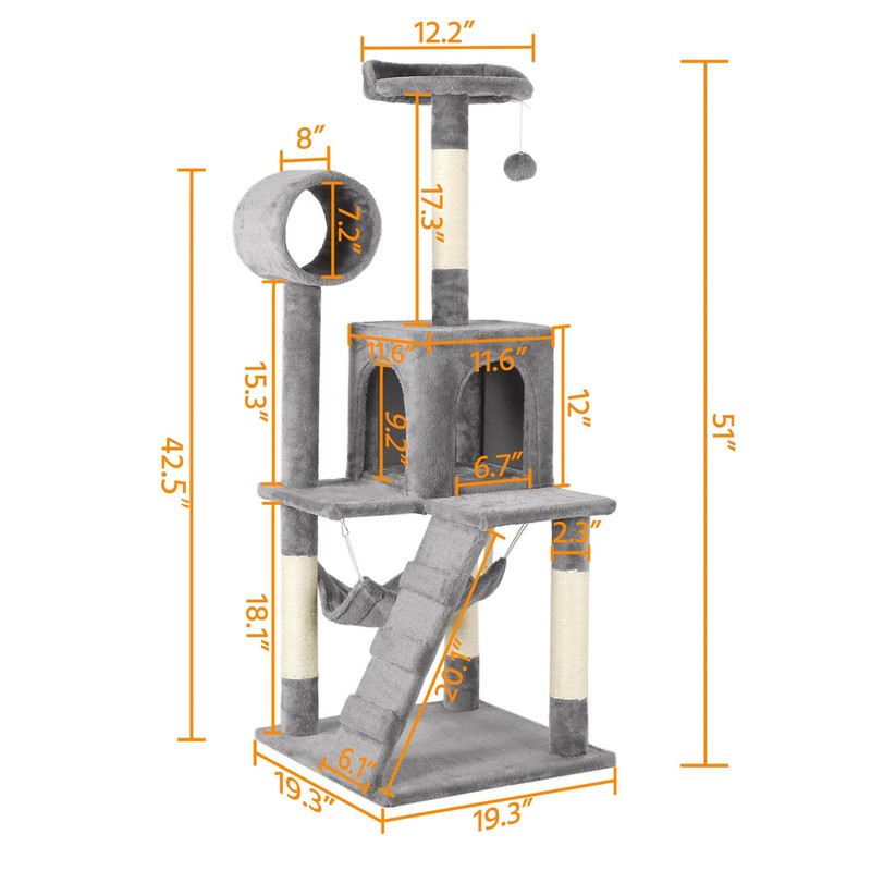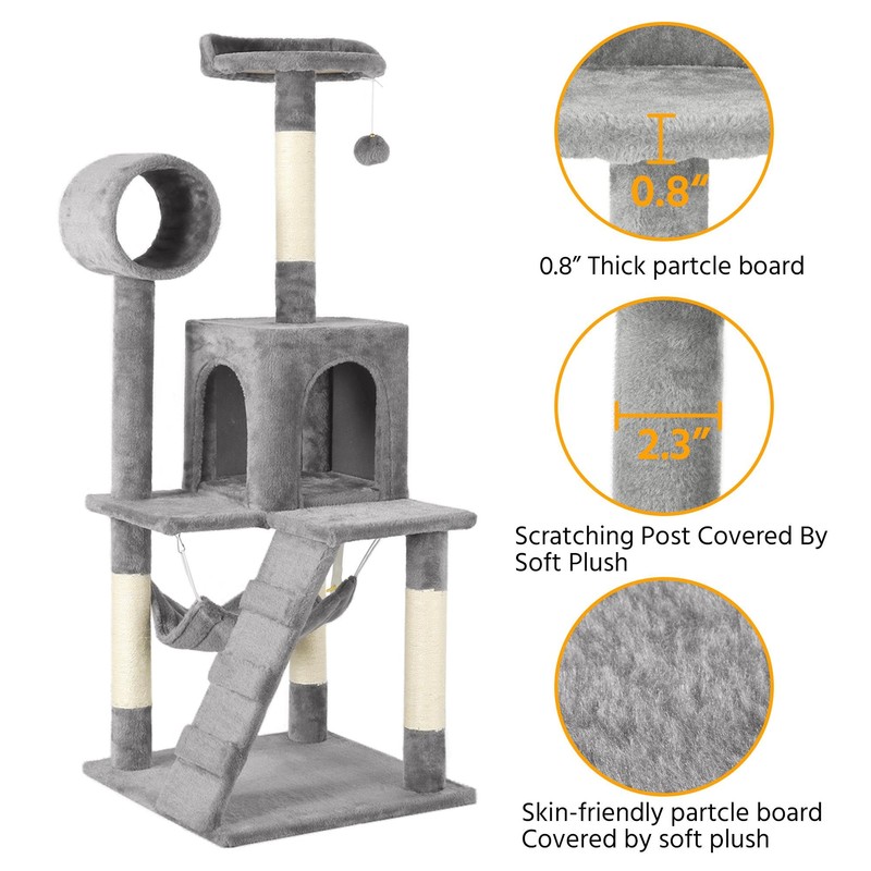 Yaheetech Cat Tree Tower Kitten Condo Scratching Post with Hammock Tunnel 51in