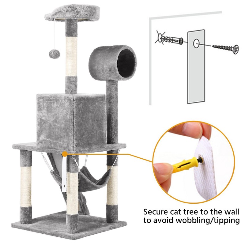 - 【Stability is Always Priority】 The bottom base is reinforced that ensure its stability of the whole cat tree.It also comes with a wall anchor strap to attach it to the wall for extra stability.