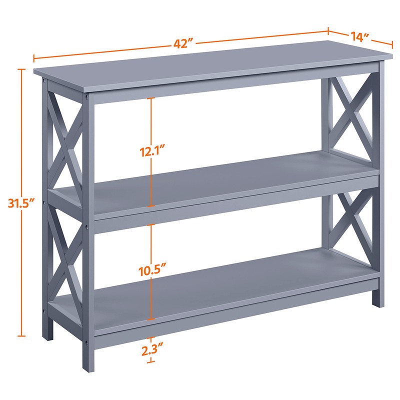 Yaheetech Console Table with 3 Storage Shelves, Entryway Table Sofa Side Table Narrow Long Bookshelf for Hallway Living Room, Accent Furniture, Gray