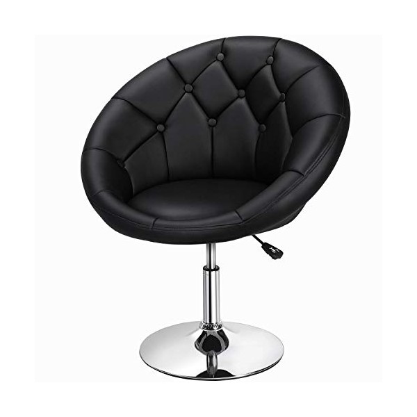 YAHEETECH Dining Room Chair Height Adjustable Round Dining Chair Upholstered Swivel Barrel Chair, Black