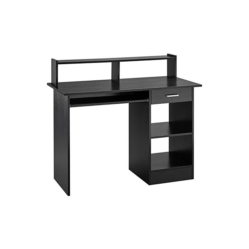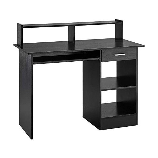 Yaheetech Home Office Wood Computer Desk with Drawers, Hutch with Pull-Out Keyboard Tray, Study Writing Desk PC Laptop Table with Storage Shelves, Modern Workstation, Black