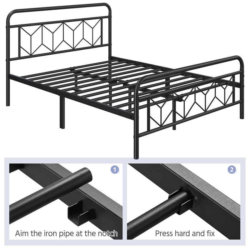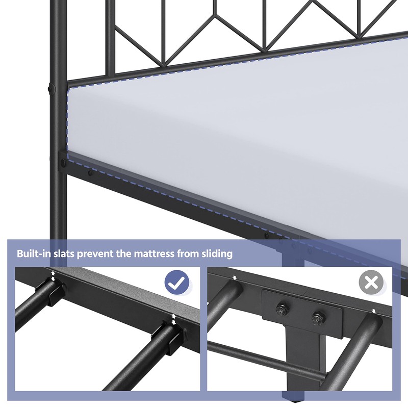 - SECURE YOUR MATTRESS: The side rails of this metal queen bed frame are thoughtfully designed to be higher than the inserted slats, along with a higher foot end, to keep your mattress in place without any undesired movement.
