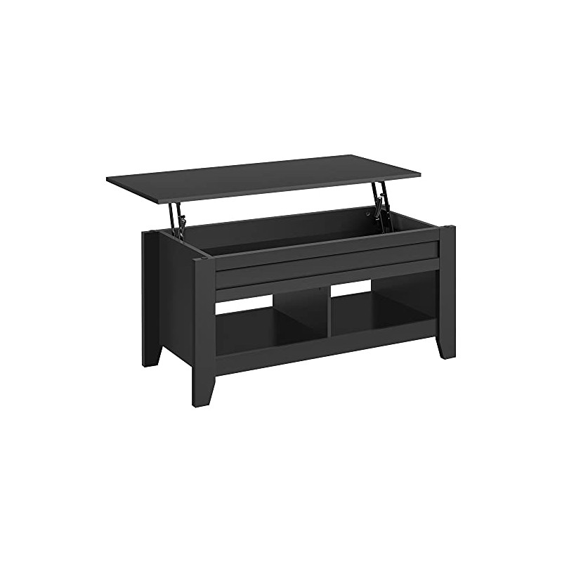 Yaheetech Modern Lift Top Coffee Table w/Hidden Storage & 2 Open Shelves for Living Room Reception Room Office 41in L x 19.5in W x 19.2-24.2in H, Black