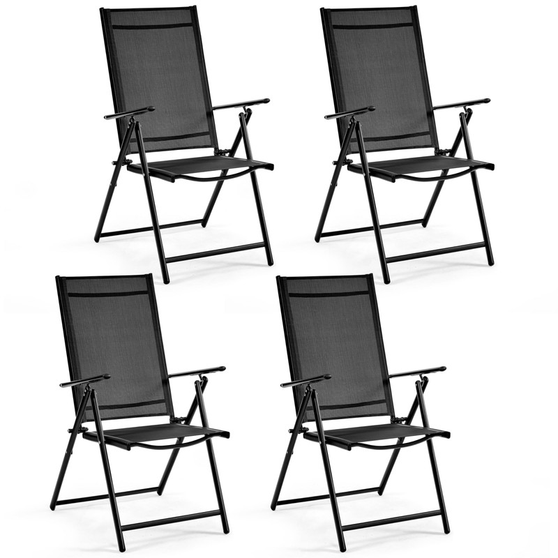 Yaheetech Outdoor Folding Dining Chairs Set of 4, Floding Texteline Chairs with 8 Adjustable Back Positions and Armrest for Garden, Lawn, Yard and Beach, Black