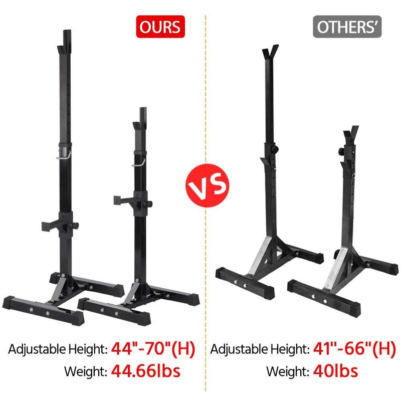 - Adjustable:The barbell stands have 14 adjustable safety pins on each post to help you adjust to the appropriate height to meet your need(5cm gaps); adjustable Height 45-70.5inch / 114-179 cm.