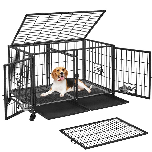 Yaheetech Stackable Dog Crate with Divider 43'' Rolling Heavy Duty Dog Cage with Open Top/ 2 Removable Trays for Small/Medium Dog