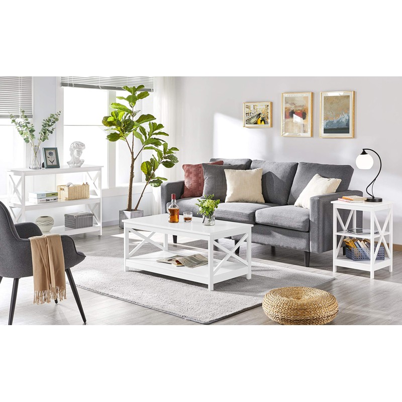 YAHEETECH Wood 2-Tier White Coffee Table with Storage Shelf for Living Room, X Design Accent Cocktail Table, Easy Assembly Home Furniture, 39.5 x 21.5 x 18 Inches