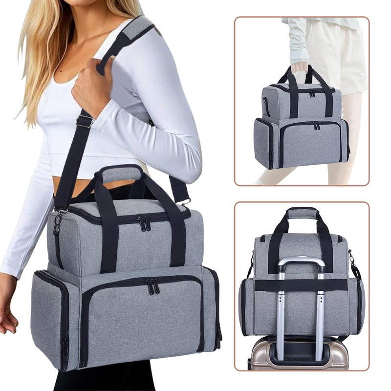 YAHOURWAT Nail Polish Organizer Bag 80 Bottles Portable Travel Storage Case with 2 Detachable Bags, Designed for Women's Nail Tools, Essential Oils and Cosmetics Sets Grey