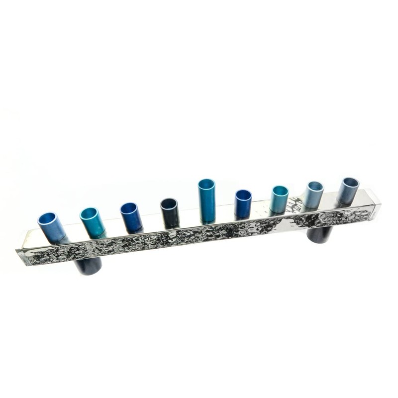 Yair Emanuel Anodized and Hammered Strip Menorah - Blue
