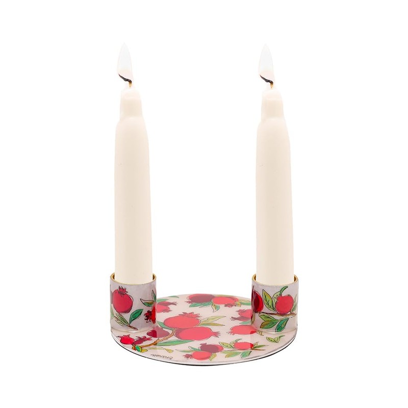 Yair Emanuel Flat Plate Candle Holders for Shabbat 6 Inch Vibrant Pattern Design Modern Judaica Gift (CSE-1 Pomegranates)