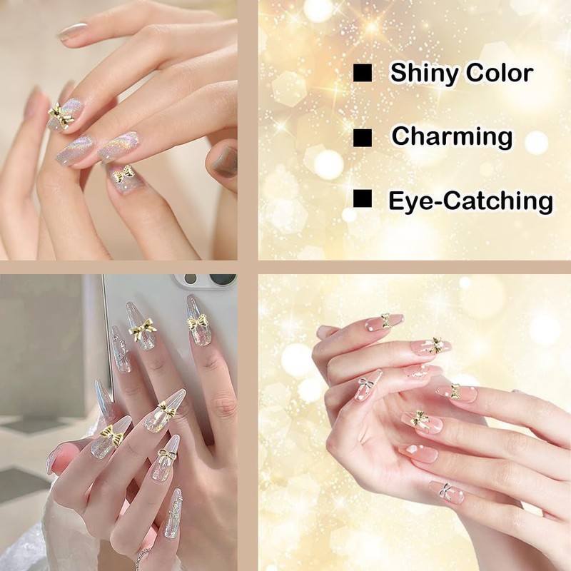 - Unique design: Bowknot nail have two colors of gold and silver, different styles of bows. You can choose different styles of bows to decorate your nails according to your preferences