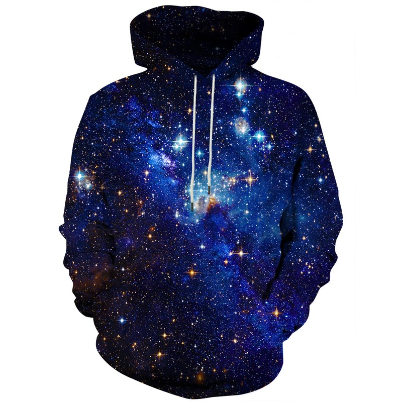 YAJOOEY Men Women Galaxy Pullover Unisex Graphic Hooded Sweatshirt 3D Hoodies with Big Pockets Small