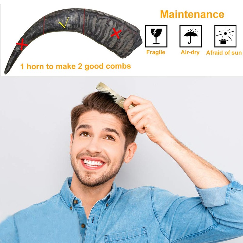 • Natural yak horns material: made of natural yak horns, smooth and comfortable, beautiful for hair and beard care. (Tips:Real horn combs maybe have a slight smell. If you do not like the smell, please wash it with soap and cold water, then air dry, avoid being exposed to the sun.)