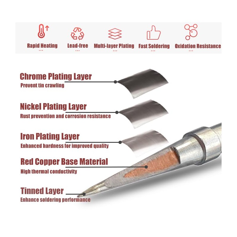 - The optimized design of soldering tips enables fast and efficient heat transfer, reducing soldering time and improving overall productivity.