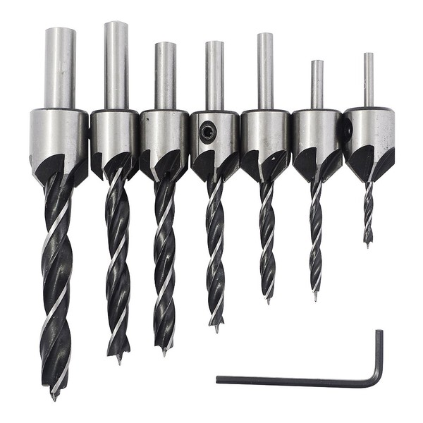 Yakamoz Countersink Drill Bits, Set of 7pcs HSS Countersink Drill Bits Hole Drill Bit Screw Woodworking Chamfer Tool with Hex Key丨3-10mm