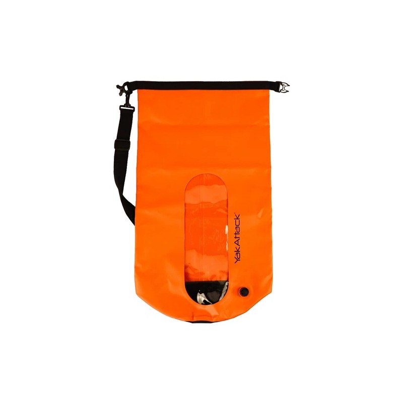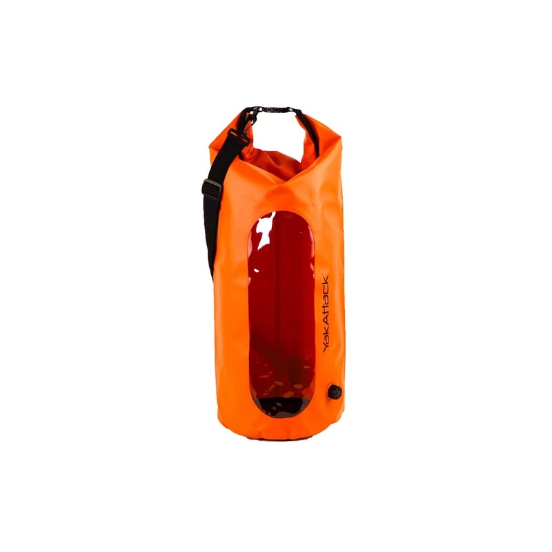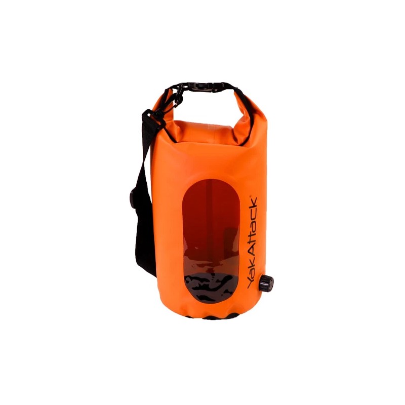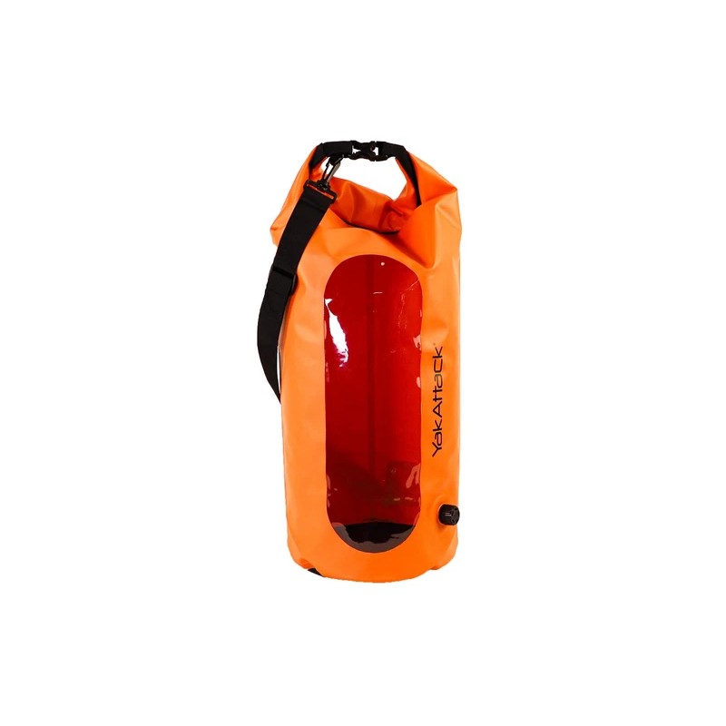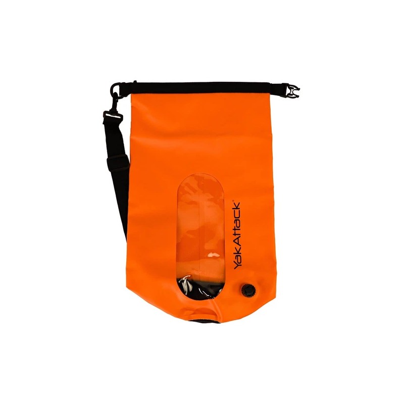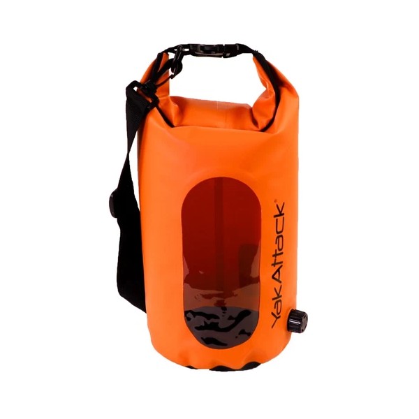 Each bag features reinforced seams for enhanced durability, and an integrated daisy chain provides versatile attachment points for securing it to your kayak, boat, or backpack. The Integrated Air Valve traps air to assist with compacting the bag for easier storage. At the same time, the transparent viewing panel lets you easily view the items in your bag. Its sleek, lightweight design allows for easy storage when not in use. Whether embarking on a multi-day expedition or a casual day trip, the YakAttack Roll-Top Drybag delivers reliable performance and peace of mind. Depend on it to safeguard your gear on every adventure, no matter where the water takes you.