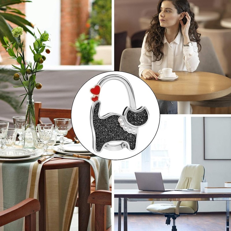 - Humanised design: the table hook for handbags is foldable. In everyday life, you can close the hook and hang it on your bag. If you want to hang something, you can open it and hang it on an object near you, e.g. table, chair, bench. In addition, there is a non-slip rubber mat behind the cats with which you can hang the cat handbag holders more firmly on the table.