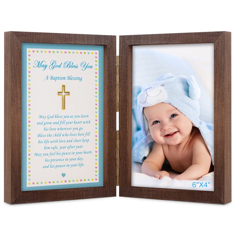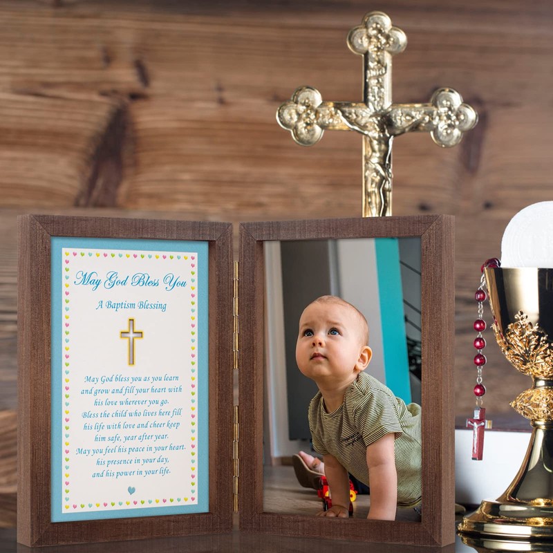Yakucho Baptism Gifts for Boys - Baby Boy Baptism Gifts, Baby Picture Frame for Baby's Christening or Baptism, Blessing Card in Frame, Add 4x6 Inch Photo to Double Frame (baptism gifts for boys)