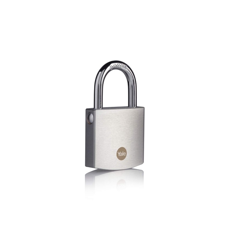 Yale Y120B/50/127/1- Brass Padlock with Chrome Finish (50 mm) - Outdoor Lock for Shed, Gate, Chain, Door - 3 Keys - High Security