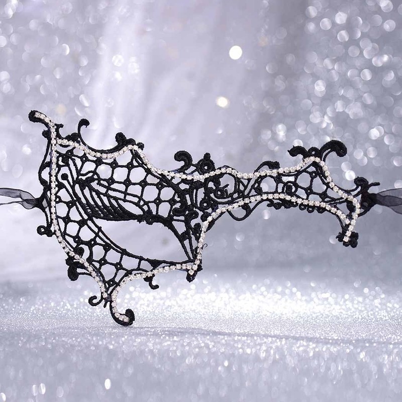 - Black lace masquerade mask Embellished with sparkle rhinestones ,made out of comfortable and lightweight meterials, great for long time wear!