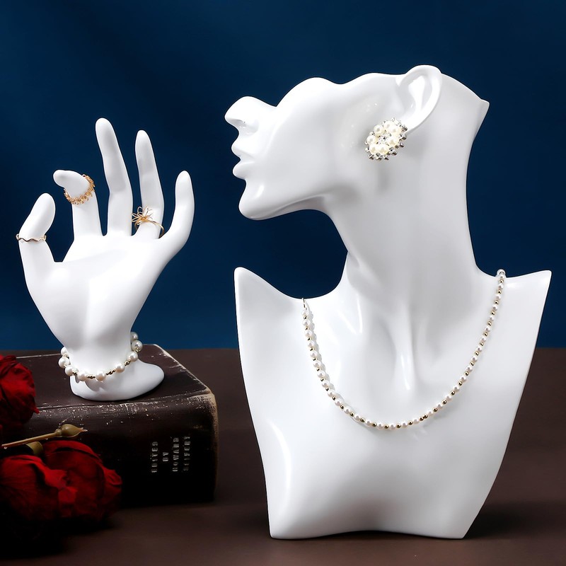 Yalikop 2 Pcs Resin Jewelry Mannequin Display Set Including Boutique Bust Holder and Hand Ring Holder Necklace Stand Display Earring Holder Organizer for Bracelets Pendant Shows Selling (White)