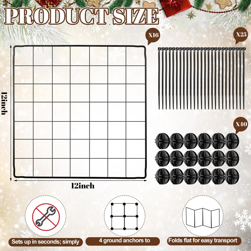 Features:Product includes:You will receive 16 pcs 24 inches tall Christmas tree decorative fences, it is also the ideal choice for pet Christmas tree fence. It can be reapplied for a long time.Applicable occasions:These fence for Christmas tree are suitable for indoor and outdoor decorations, can be applied to gardens, courtyards, lawns, balconies, your living rooms, restaurants, hotels, and clothing stores, make your home or other place more attractive and add vitality to your lifeSpecifications:Material: ironColor: blackSize: 30 cm x 30 cm / 12 x 12 inchesPackage includes:16 x Metal Christmas tree fence40 x Black buckles25 x Black zip tiesNotes:Manual measurement, please allow slight errors on size.The color may exist a slight difference due to different screen displays.Small items are included, please keep them away from pets in case of choking risk. Before purchase, confirm whether the product size is suitable for your pet, and observe the pet's reaction when using. Please remove the product in time if there is any discomfort.Small parts included, please keep them away from little kids to avoid swallowing risk