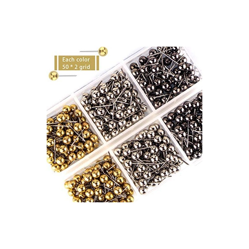 • 3 retro metallic color map tacks, 100-count for each color, total 300pcs in a clear box that is convenient to storage, the case keeping each color in place that you can get them quickly