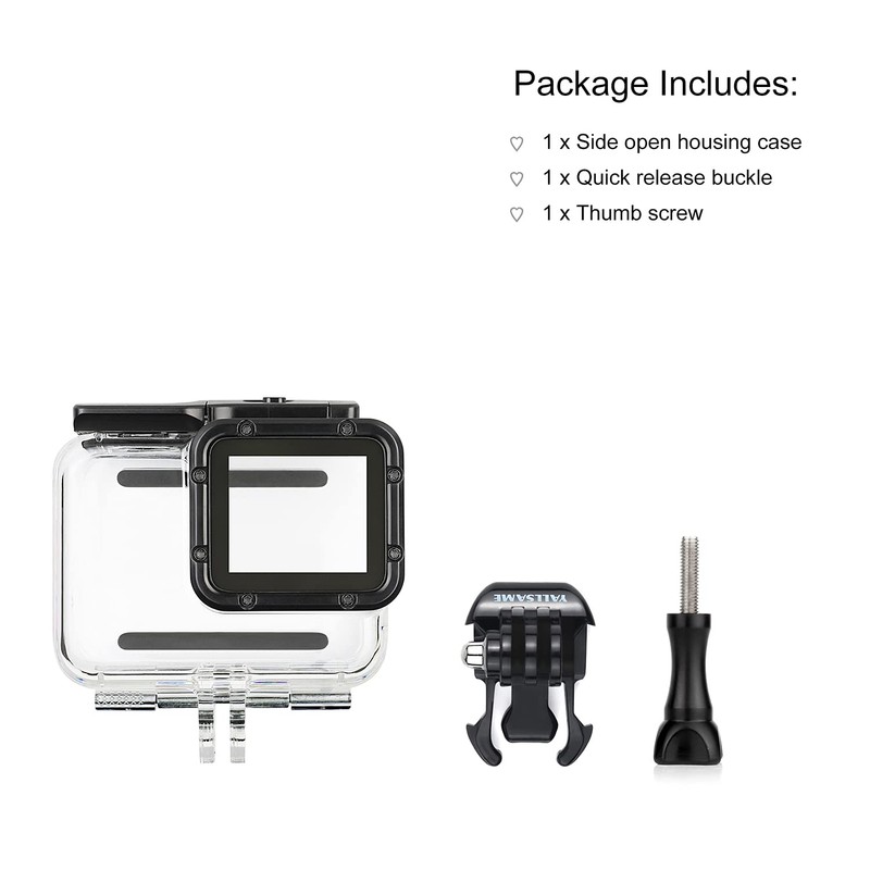 - Package Includes: 1x Waterproof housing case, 1x Quick release buckle, 1x Thumb screw.
