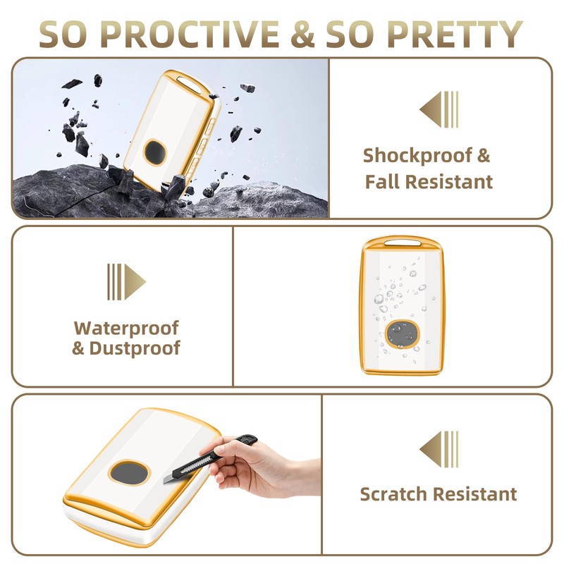 - Premium Material: This key fob holder is made of high-quality soft and thin TPU material, which provides better protection and more comfortable durable for using; Desighed with silver rims, the triple electroplating made the car key case looks beautiful and stylish