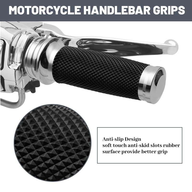 YALTIES 1 Inch Motorcycle Hand Grips, Handlebar Grips Cable Throttle Compatible for Harley Davidson Sportster Dyna Softail Street Glide 883 1200, Chrome