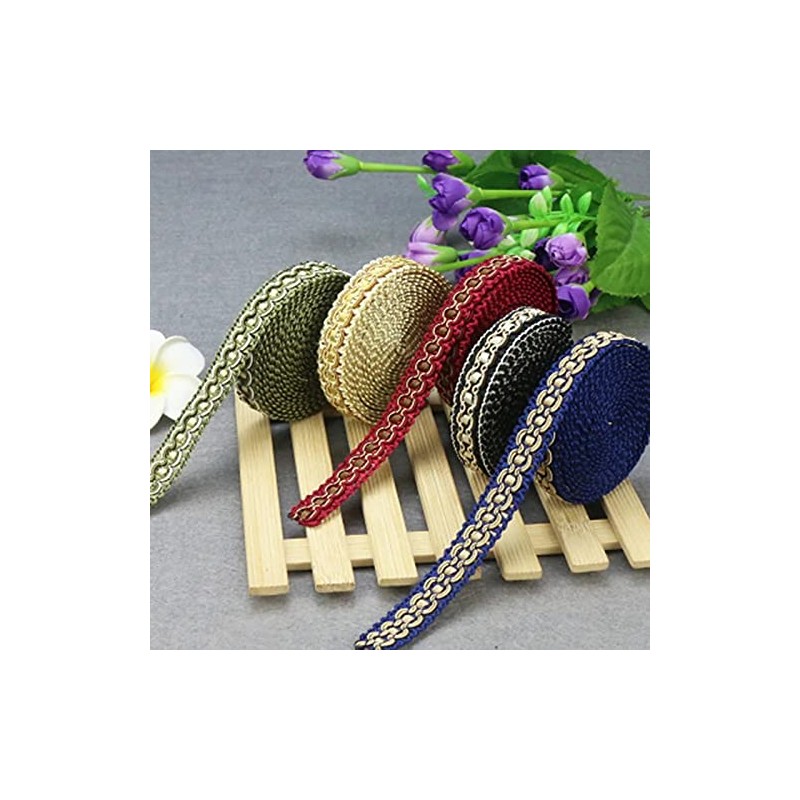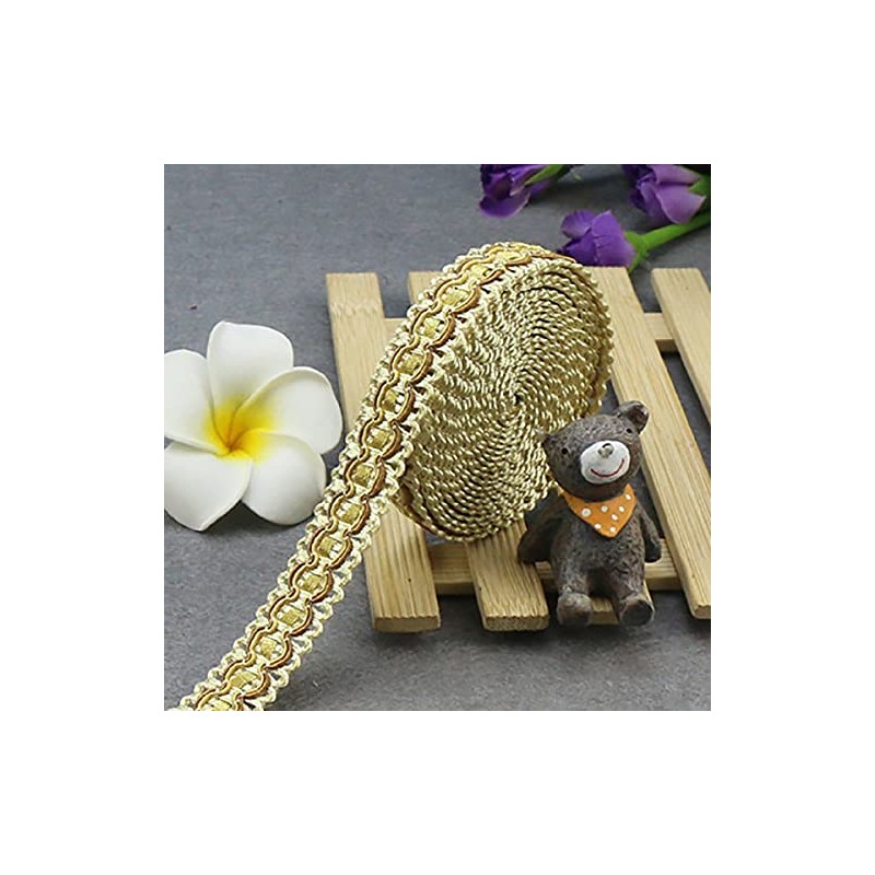 Yalulu 10 Yards Polyester Woven Gimp Braid Trim Lace Edge Trim Edging Trimmings Fabric for DIY Sewing Net Yarn Ribbons Clothing Accessories Decor (Gold)