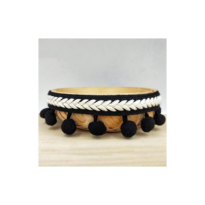 Yalulu 5 Yards Embroidered Trim Ribbon Pompom Trim Fringe Ribbon Pom Pom Crafts Lace DIY Sewing Accessories Decoration Supplies (Black)