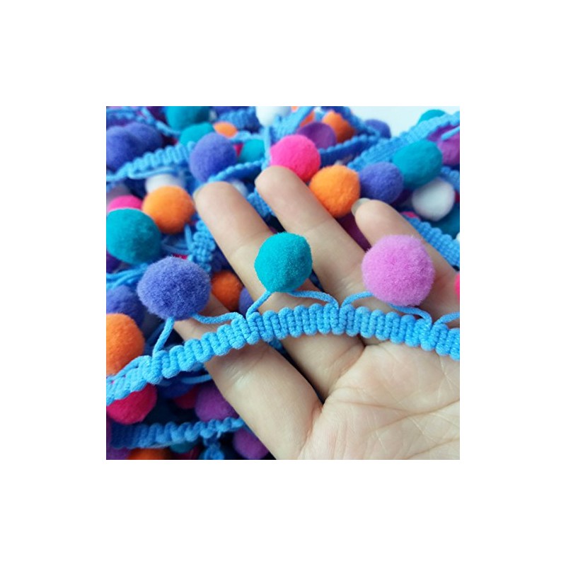 Yalulu 5 Yards Mini Rainbow Pom Pom Tassel Pompom Trim Ball Fringe Ribbon DIY Sewing Accessory Lace Fabric Craft Sewing Supplies (Blue 2)