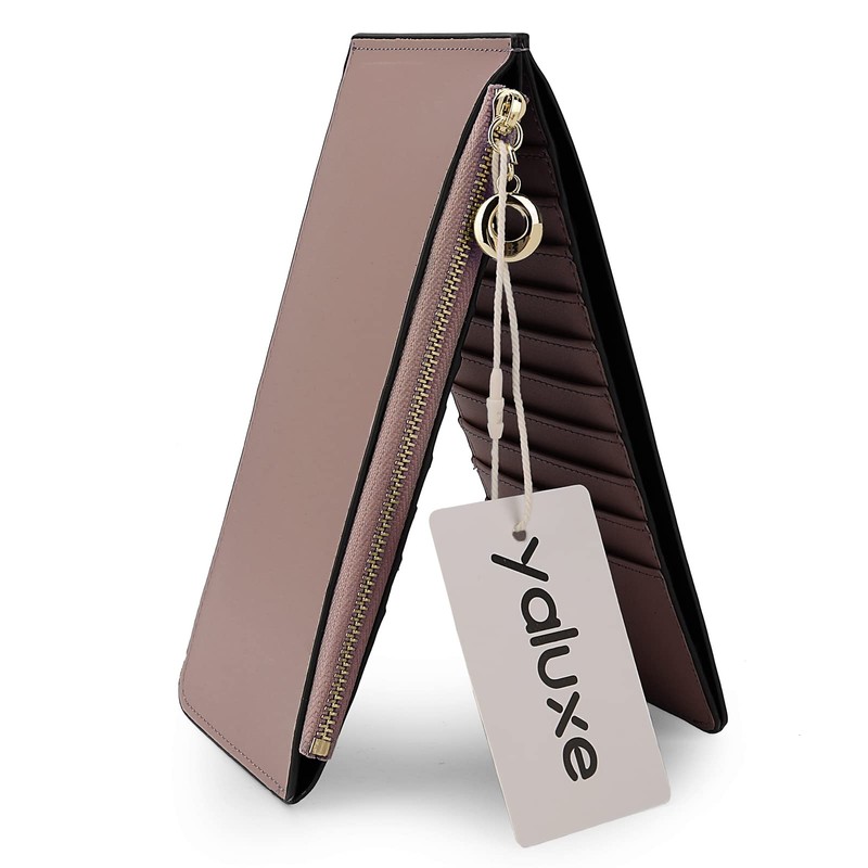 YALUXE Women's RFID Blocking Genuine Leather Wallet Billfold Credit Card Holder Organizer with Zipper Pocket for Phone