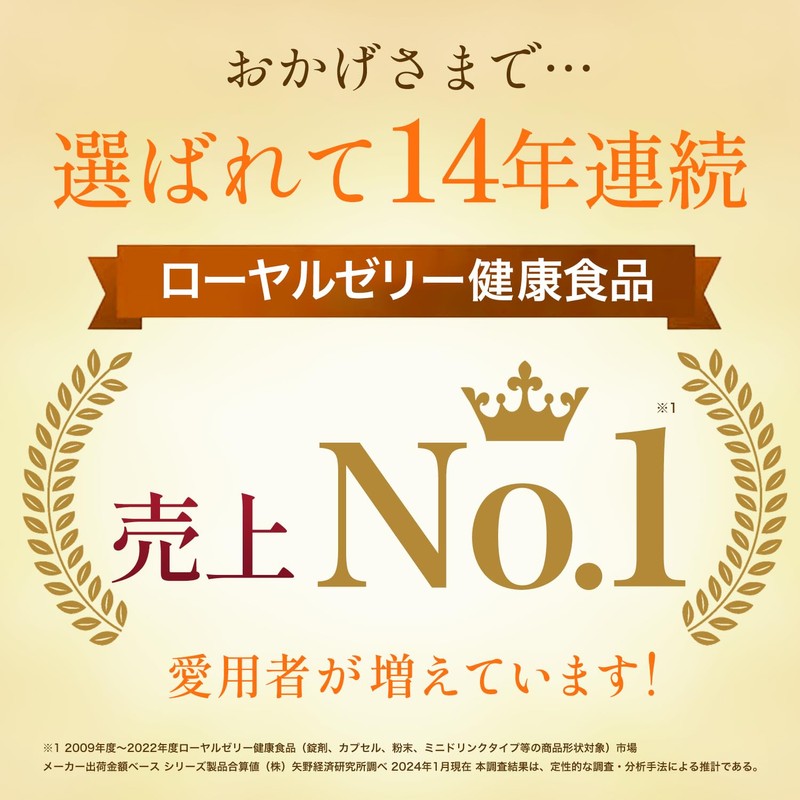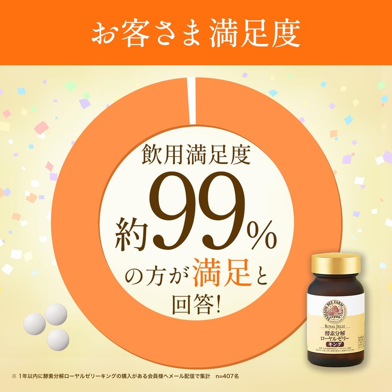 • Recommended for those who want to stay youthful forever; "I want to maintain health and beauty." Enzyme-degradation Royal Jelly King supports you